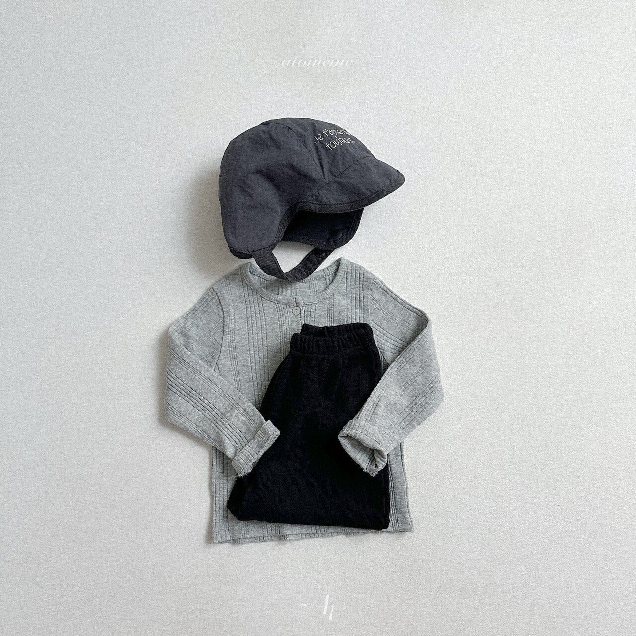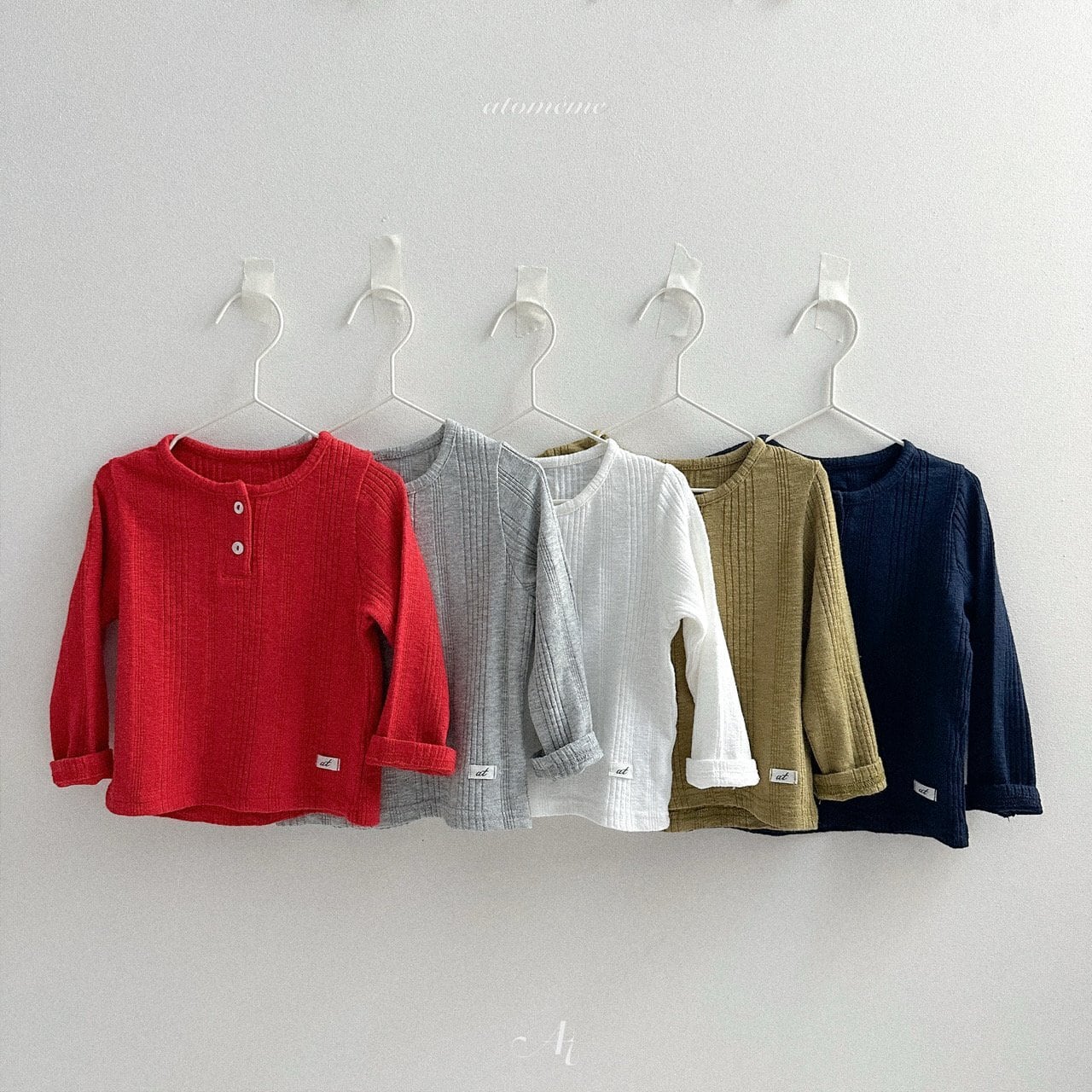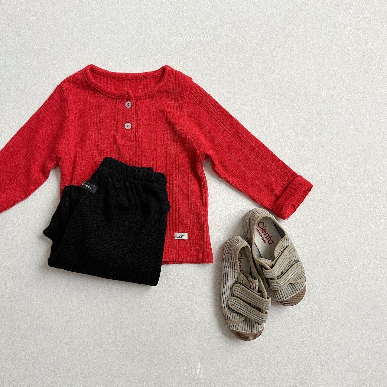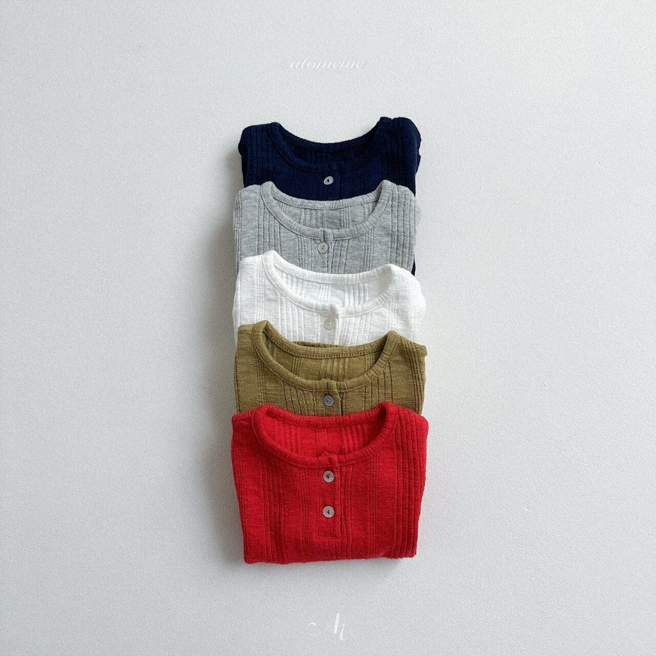 atomeme button rib T-shirt *S~XL*
