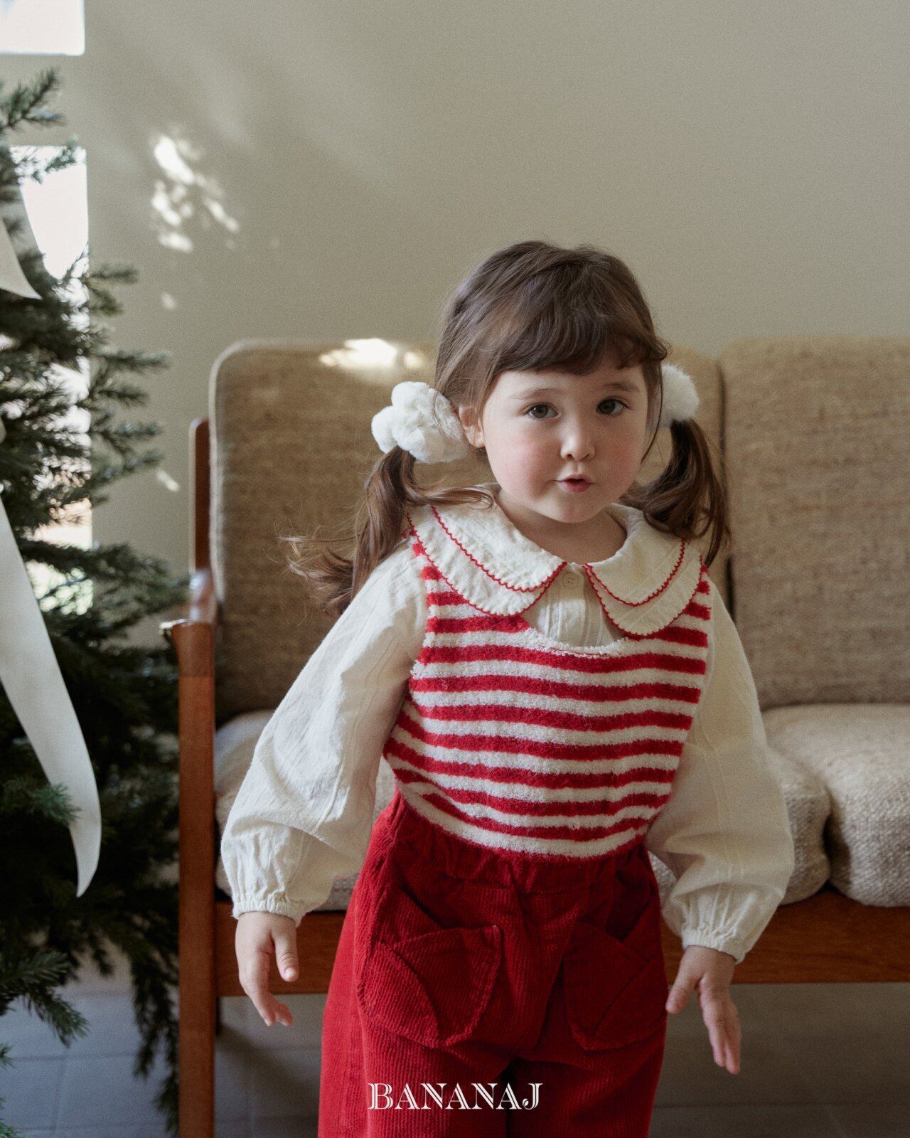 BANANA J Mongsil border Tops *XS~JS*