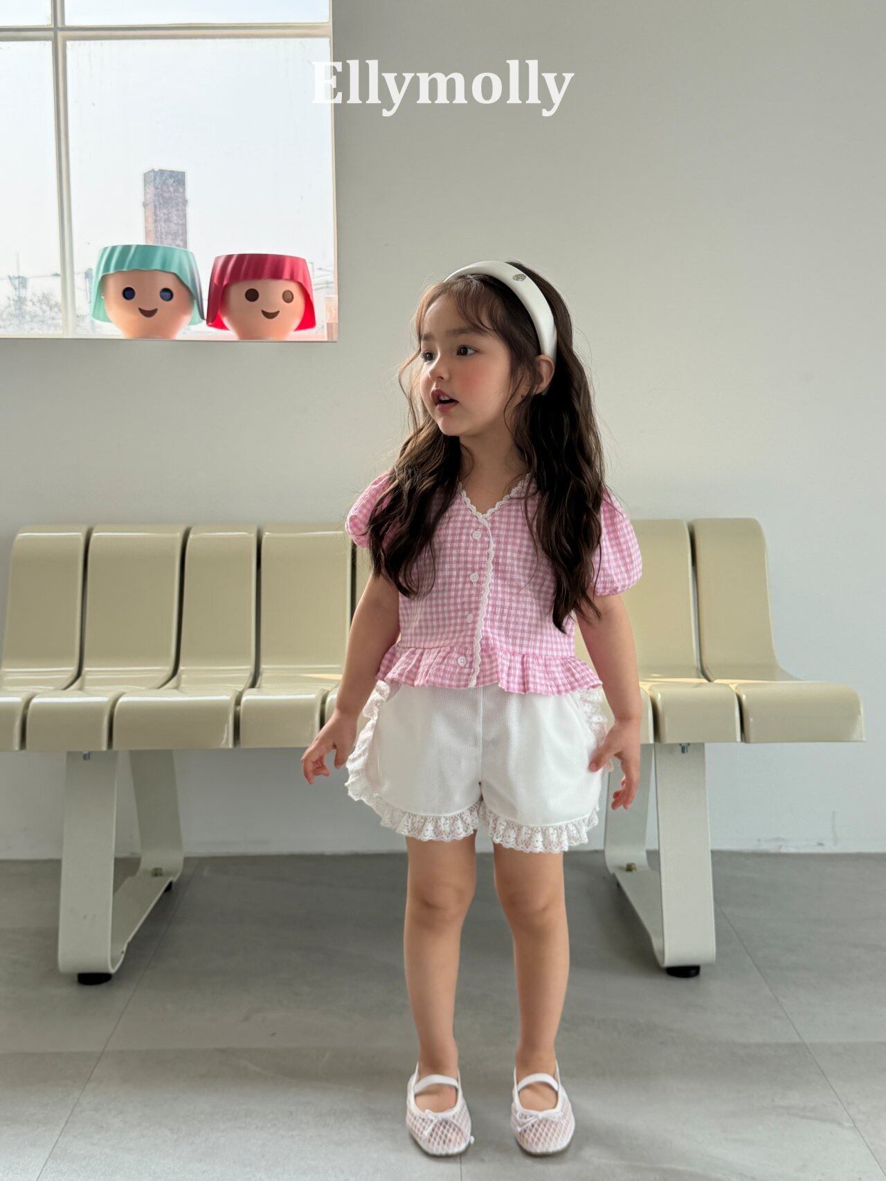 elly molly エリーモリー 韓国子供服 ブラウス チェック柄 フリル 子供服 こどもふく 女の子 26夏 夏 コーデ おしゃれ キッズ ファッション 85 90 100 110 120 130 140 150 160 兄弟姉妹 リンクコーデ 発表会 お出かけ おしゃれ着 かわいい ベビー服