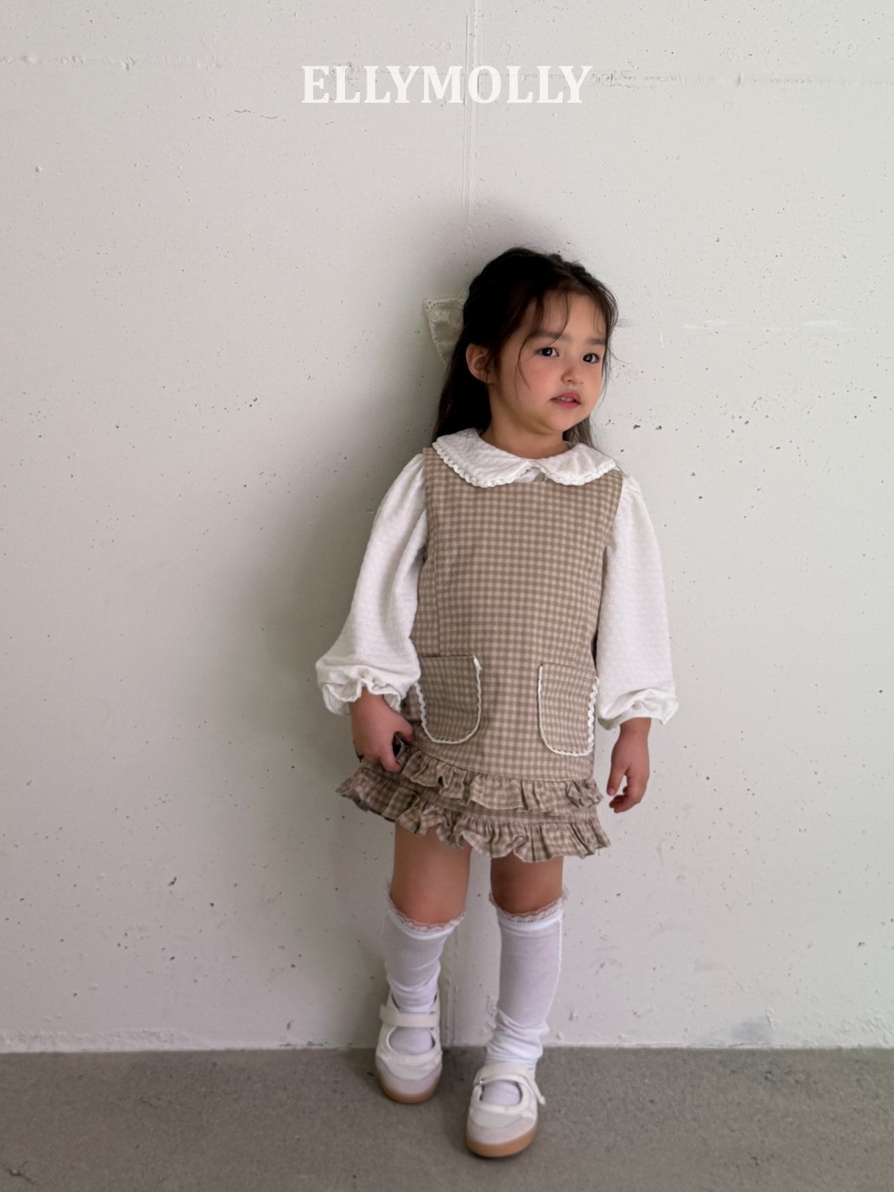 elly molly エリーモリー 韓国子供服 ビスチェ キャミソール フリル 子供服 こどもふく 女の子 26夏 夏 コーデ おしゃれ キッズ ファッション 85 90 100 110 120 130 140 150 160 兄弟姉ボーダー フリルワンピース Ellymolly パイピング フリルワンピース Ellymolly | 25 Autumn 新作 ロゴ刺繍 グレー Aライン 長袖 お出かけ着 韓国子供服 キッズ 女の子