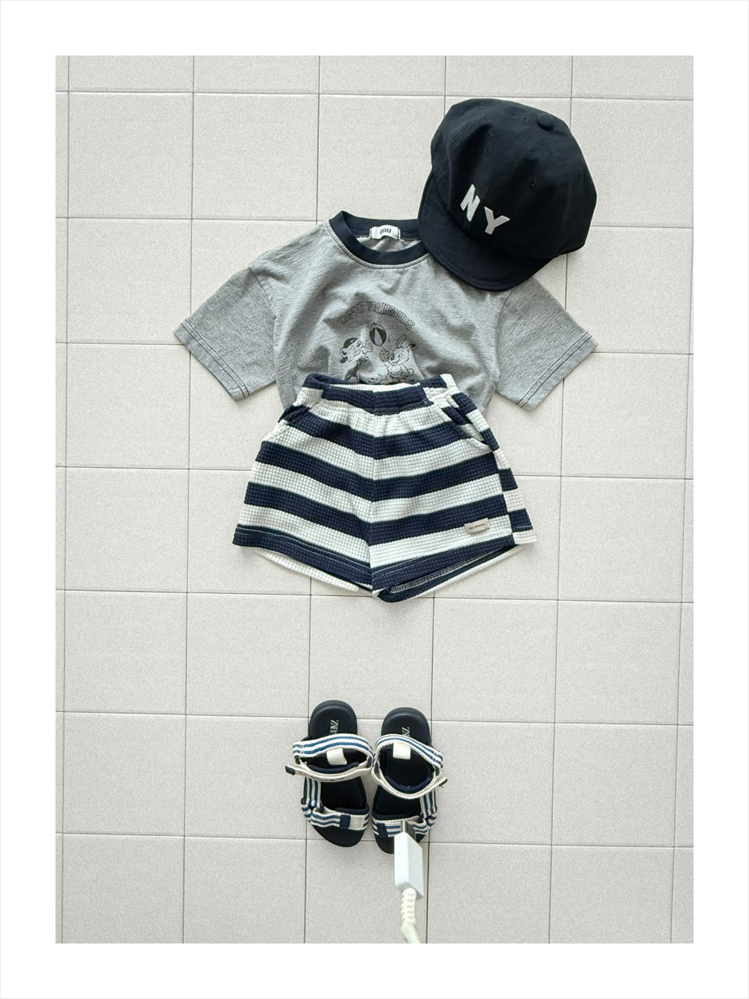 韓国子供服, ONU, オヌ, ボーダーTシャツ, キッズトップス, 半袖カットソー, くすみカラー, ユニセックス子供服, ナチュラルキッズファッション, 春夏新作, リンクコーデ, 男の子服, 女の子服