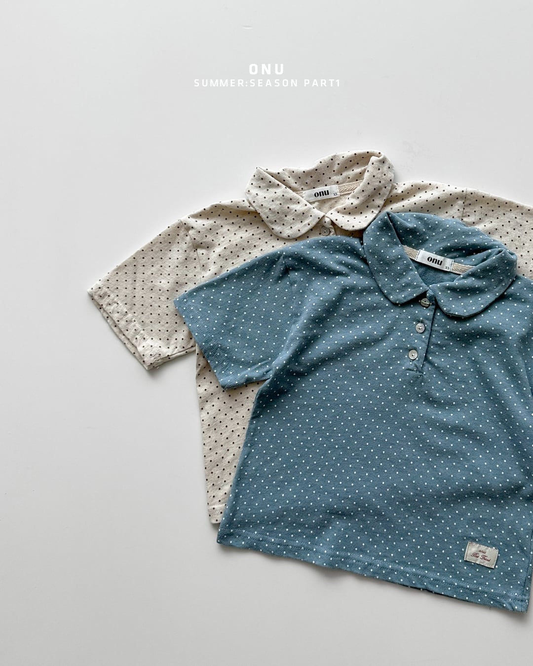 韓国子供服⌇ONU⌇Dot Collar Short-Sleeved T-shirt⌇26summer⌇半袖Tシャツ⌇襟付きTシャツ⌇ *XS~XL*