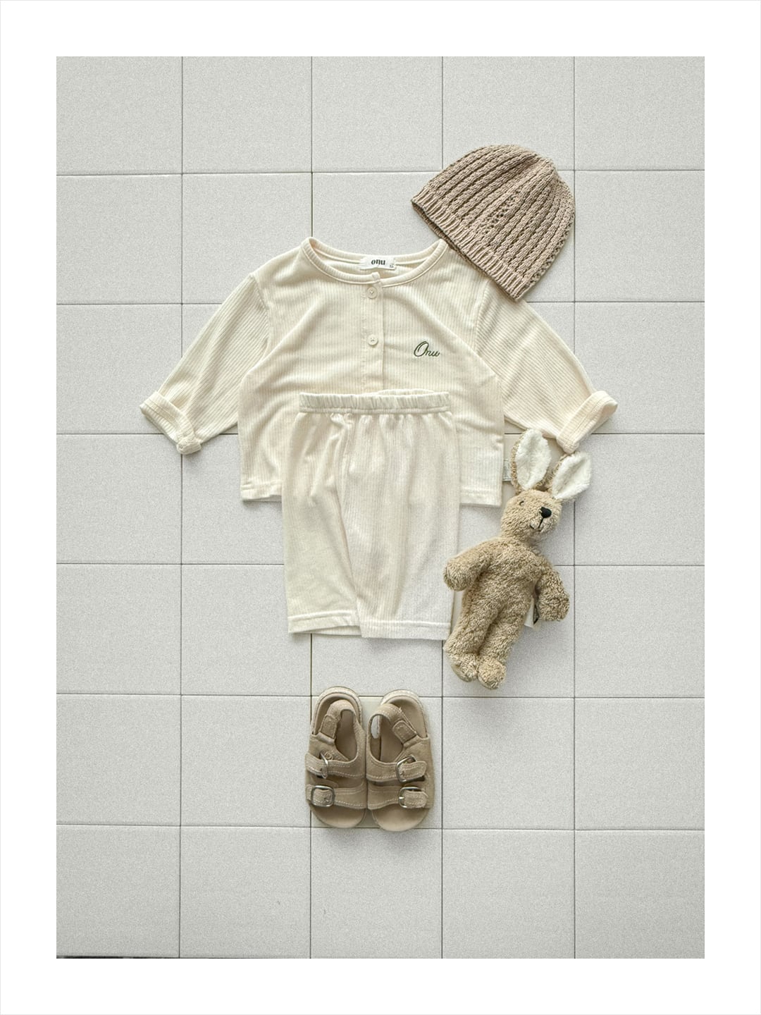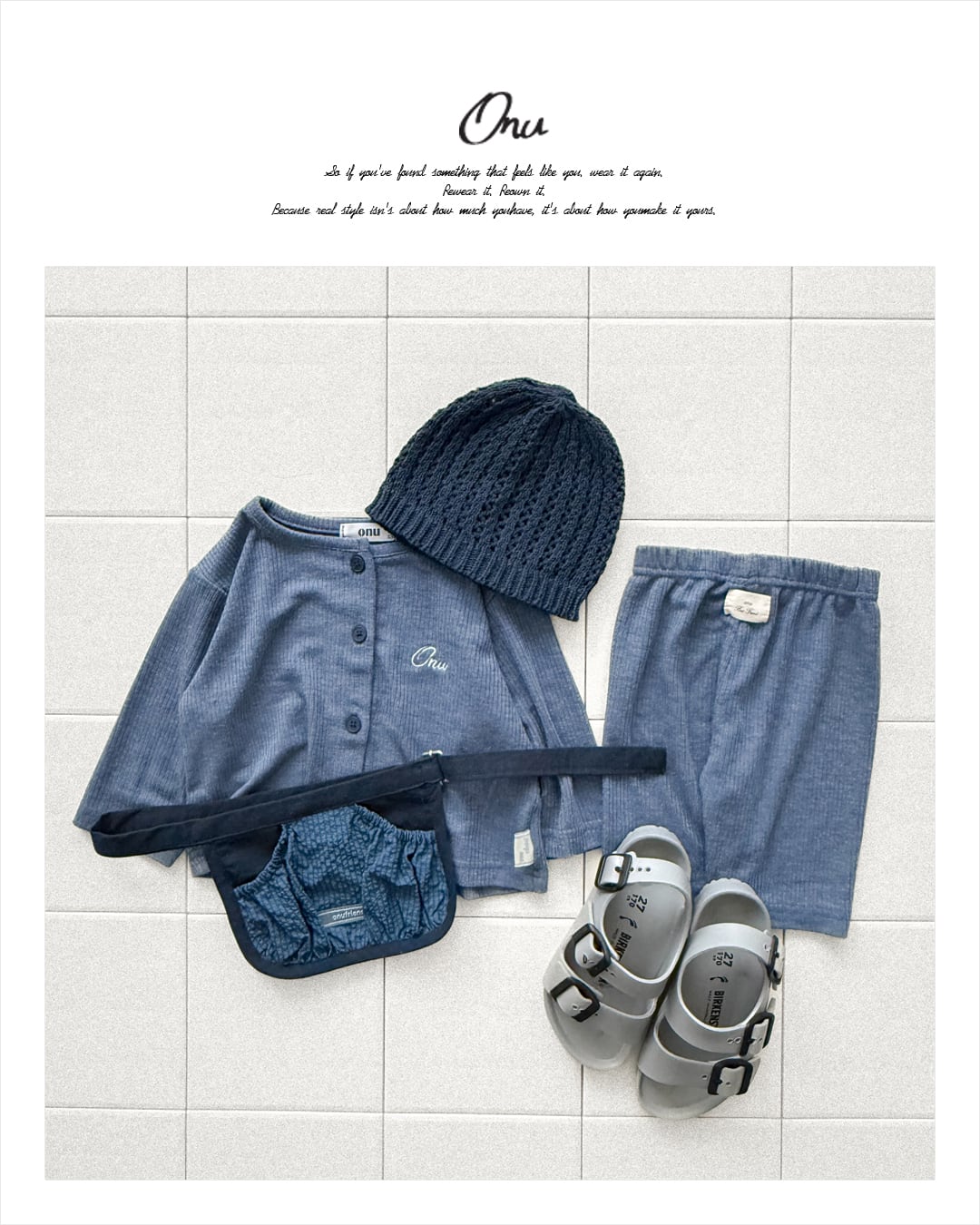 韓国子供服, ONU, オヌ, ボーダーTシャツ, キッズトップス, 半袖カットソー, くすみカラー, ユニセックス子供服, ナチュラルキッズファッション, 春夏新作, リンクコーデ, 男の子服, 女の子服