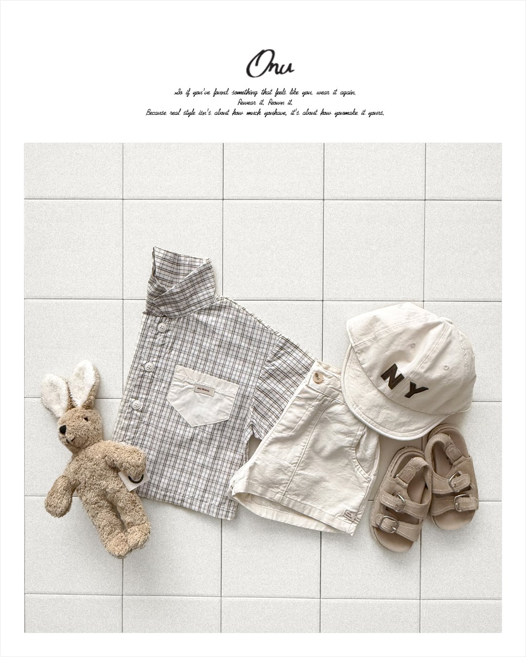 韓国子供服, ONU, オヌ, ボーダーTシャツ, キッズトップス, 半袖カットソー, くすみカラー, ユニセックス子供服, ナチュラルキッズファッション, 春夏新作, リンクコーデ, 男の子服, 女の子服