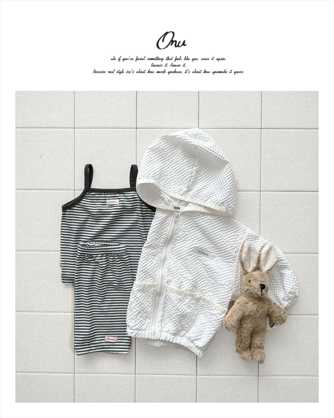 韓国子供服, ONU, オヌ, ボーダーTシャツ, キッズトップス, 半袖カットソー, くすみカラー, ユニセックス子供服, ナチュラルキッズファッション, 春夏新作, リンクコーデ, 男の子服, 女の子服