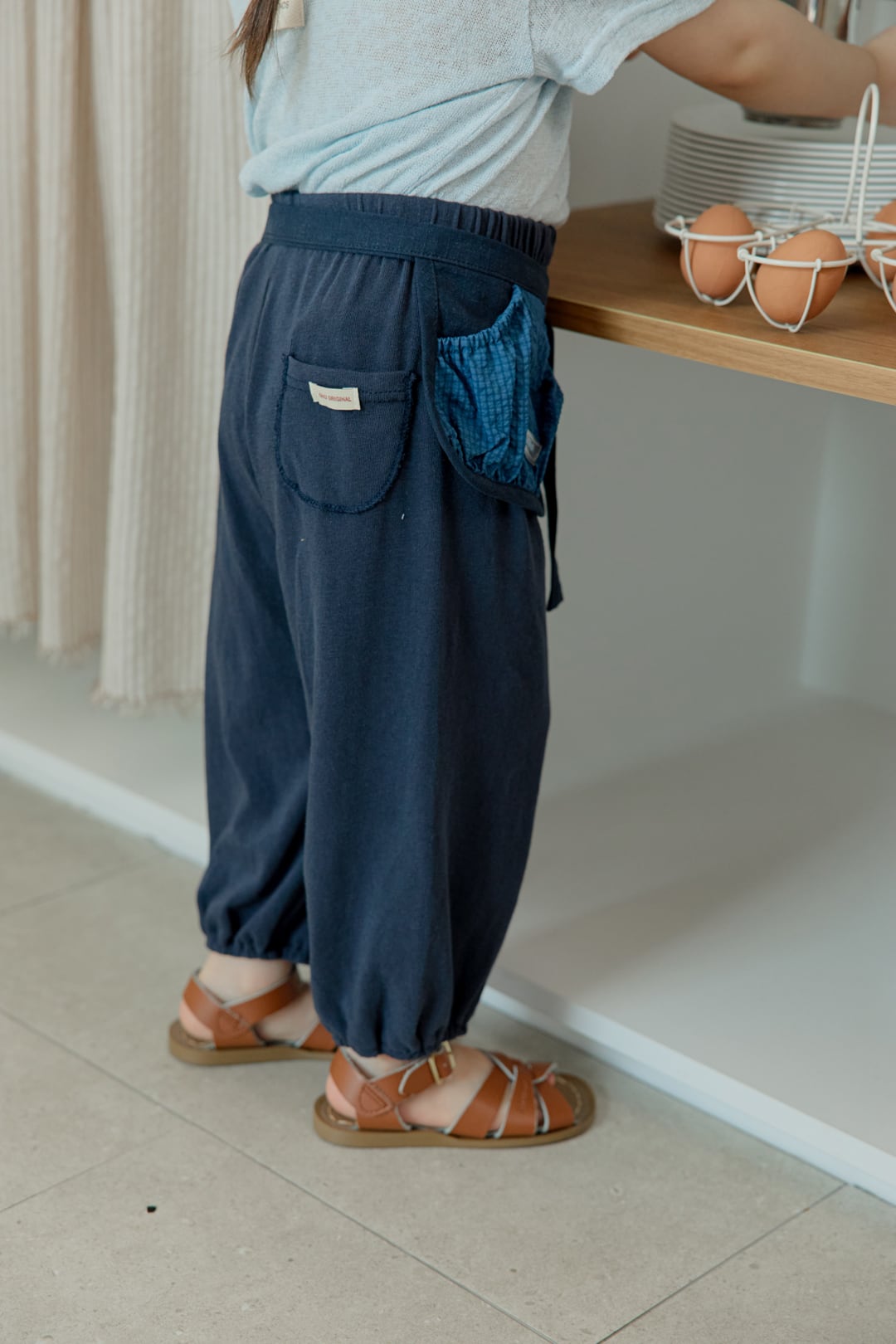 縫製後にノーマルウォッシュを施し、洗濯後も衣服の変形を最小限に抑えます