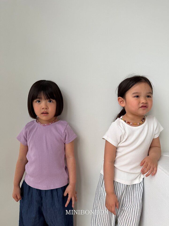 韓国子供服⌇minibonbon⌇清純リブTシャツ⌇26summer⌇半袖Tシャツ⌇キッズ服⌇ *XS~JL*