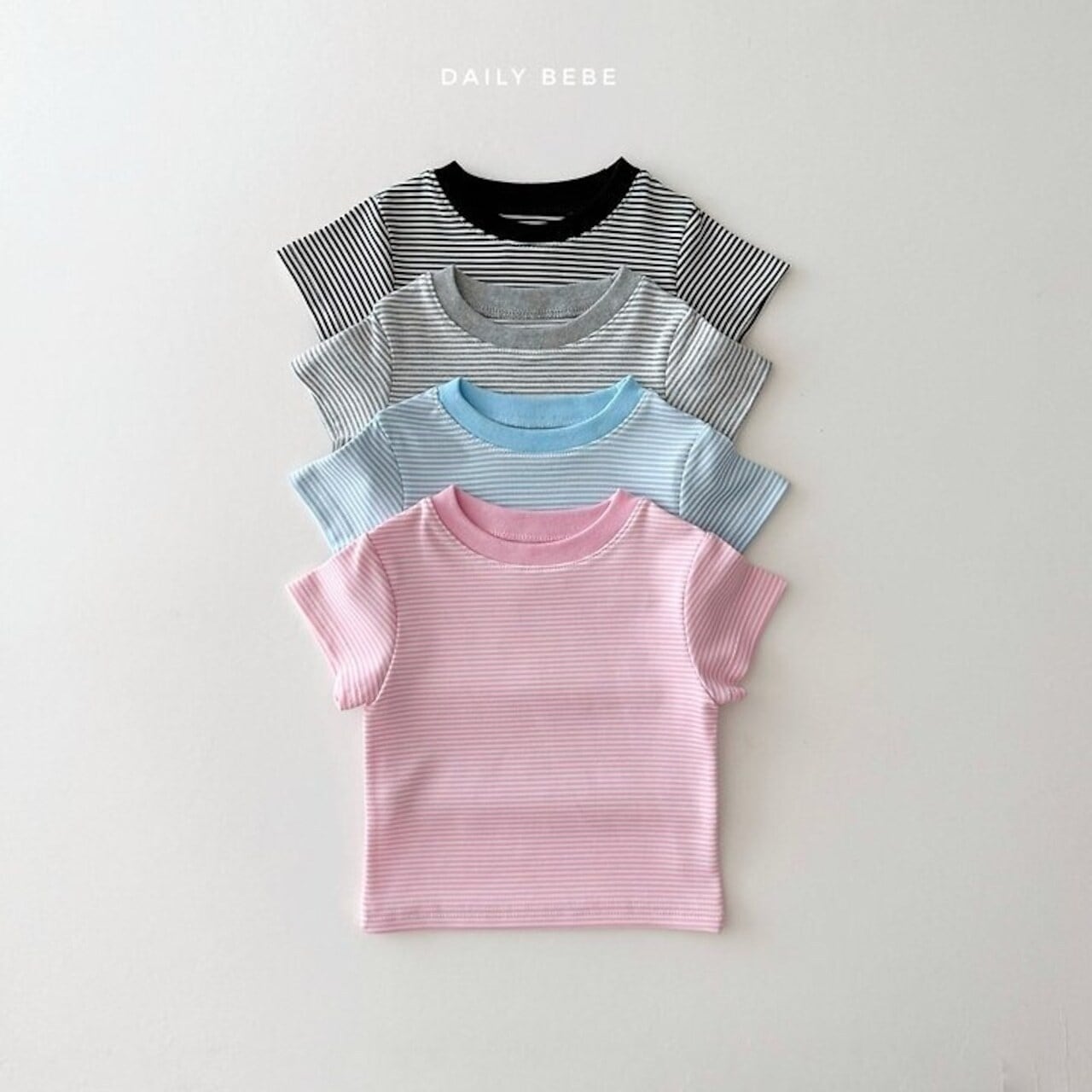 韓国子供服⌇ DAILYBEBE⌇コージストライプTシャツ⌇26summer⌇キッズ⌇ジュニア⌇半袖Tシャツ⌇ *XS~JL*