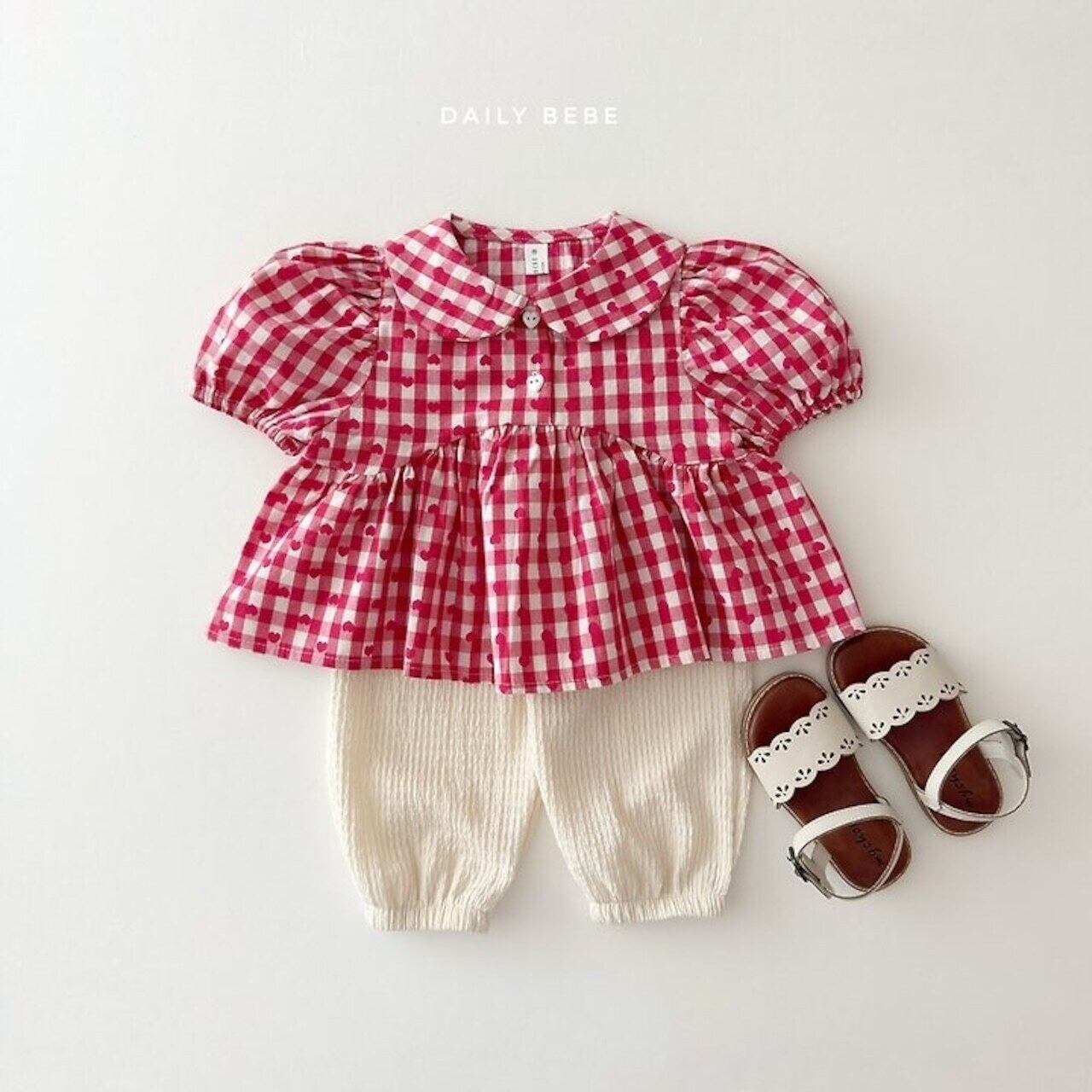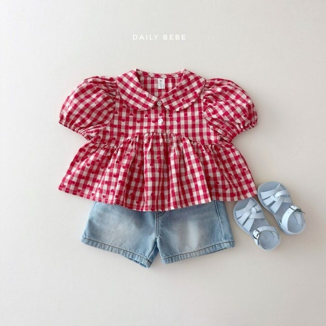 韓国子供服⌇ DAILYBEBE⌇ハートブラウス⌇26summer⌇キッズ⌇ジュニア⌇ブラウス⌇ *XS~JL*