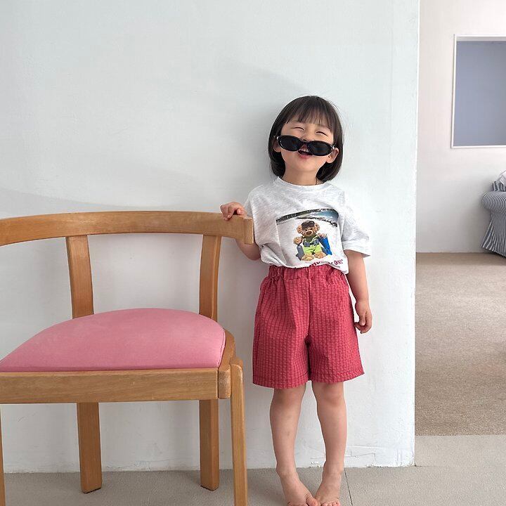韓国子供服⌇NIGHT BEBEチェッカーボードパンツ⌇26summer⌇半ズボン⌇ *XS~XL*